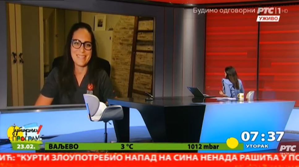 RTS 1, Beogradska hronika https://youtu.be/O1JrB6IvAfg?si=o82VQTdaeRDsGzwZ EuroNews, Jutarnji program https://youtu.be/D4Ddc9ZT4EY?si=J1Pjzk50Kx6S8GhJ TV K1, Uranak https://youtu.be/0K0JLGhdTKY?si=UUX856AZlkjokU4s